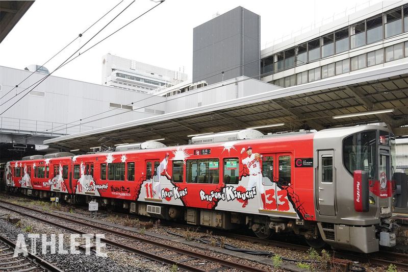 「今年のラッピングトレインは僕たち選手の躍動感ある姿やキャッチフレーズが描かれていて、とてもインパクトのあるデザインに仕上げていただきました。今年1年、リーグ優勝、日本一を目指してしっかり戦っていきたいと思います。熱いご声援をよろしくお願いします」(堂林)