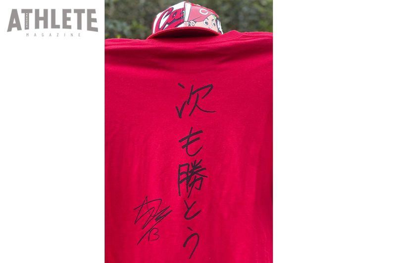 そしてTシャツには「勝利に進む我がカープ」の文字。背中部分には「次も勝とう」の文字。いい言葉じゃありませんか!「加藤」と「勝とう」をかけていると思いますが、今は矢崎という名字になってますから、そこはスルーしましょう(笑)