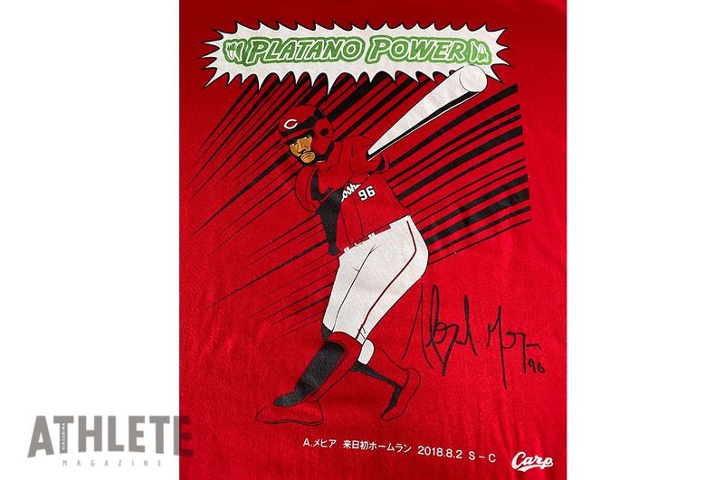 初ホームランを打った2018年8月2日。僕は神宮球場のレフトスタンドでその瞬間を見ておりました。試合は負けていましたが、メヒア選手のレフトスタンドへの弾丸ライナーでのホームランに、カープファンは大盛り上がり。すぐそこにボールが飛び込んできたわけですから僕も大興奮です。そして『Tシャツが出るぞ!絶対ゲットするぞ!』と同時に思いました(笑)