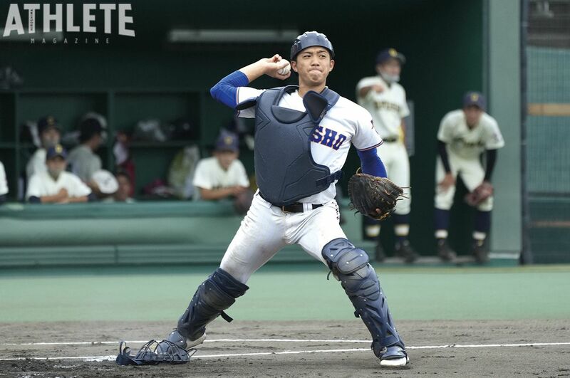 高校球界では、ロッテから1巡目指名された松川虎生(市立和歌山商)と並び称されていた大型捕手。どちらかといえば、『バットマン』のイメージがあります。