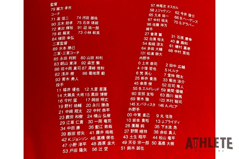 背中にデザインされている2016年の首脳陣、選手たちのリスト。見る度に懐かしい気持ちでさせてくれます。