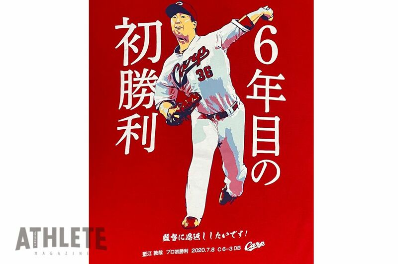 プロ6年目での初勝利。ファーム時代に佐々岡真司監督に、たくさん指導してもらったでしょうから「監督に恩返ししたいです!」というTシャツの言葉も頷けますね。