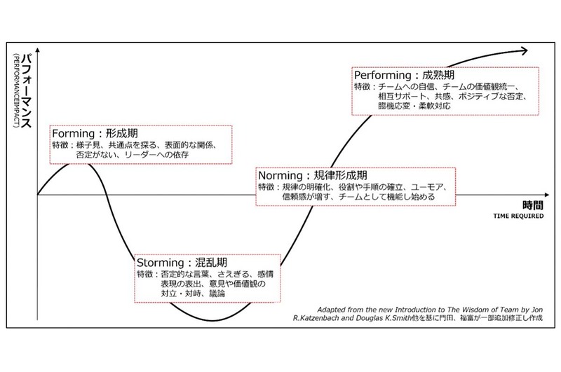 さらに、チームとして上向きになり始めてからも機能するまでには時間はかかります。