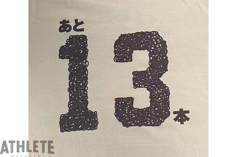 時は2016年4月6日、マツダスタジアムでのヤクルト戦。打席に立つのは新井貴浩選手。1回1死満塁の場面で、センターへの2点タイムリーヒット!これが通算1987本目のヒットに。2000本へのカウントダウンを『あと13本』とし、記念Tシャツが誕生しました。