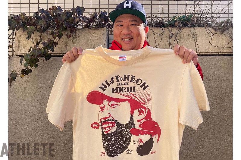 一軍の試合には出場していないので、もちろん初ホームラン記念Tシャツなどは何も出ていません。ですが、新井さんの二千本カウントダウンTシャツのおかげで、プライディ選手の姿はTシャツとして残っているのです!そして、プライディ選手の髭をたくわえた新井選手の姿も(新井プライディの姿がデカすぎて、本家プライディの存在感が少々薄れてしまってはいますが……)。