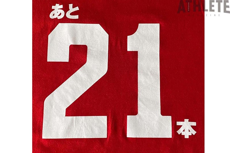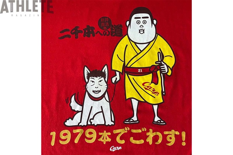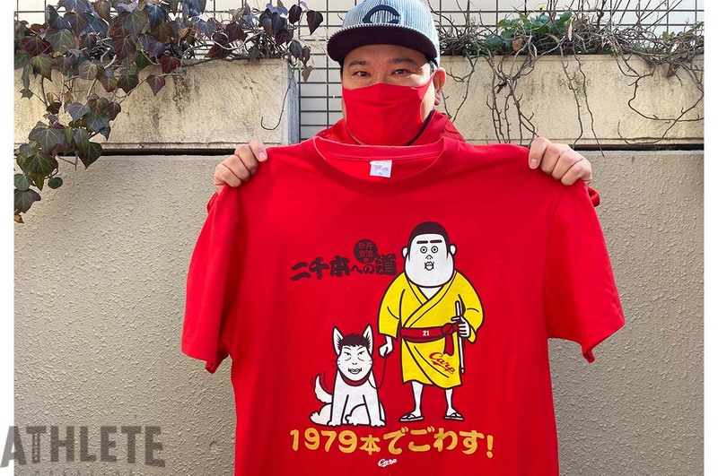 「あと23本」Tシャツは薮田選手とのコラボ、「あと22本」は中村恭平選手&松山竜平選手とのコラボ、「あと21本」は中﨑翔太選手とのコラボ。さて、どうしよう……?