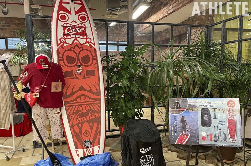 「〝I-SUPボードセット〟という、サップボードのセットです。広島は『水の都』と言われるほど河川が発達していて、サップを楽しむ方もたくさんいらっしゃいます。そういった方たちにもカープグッズを楽しんでいただきたいという思いで発案し、商品化しました」
