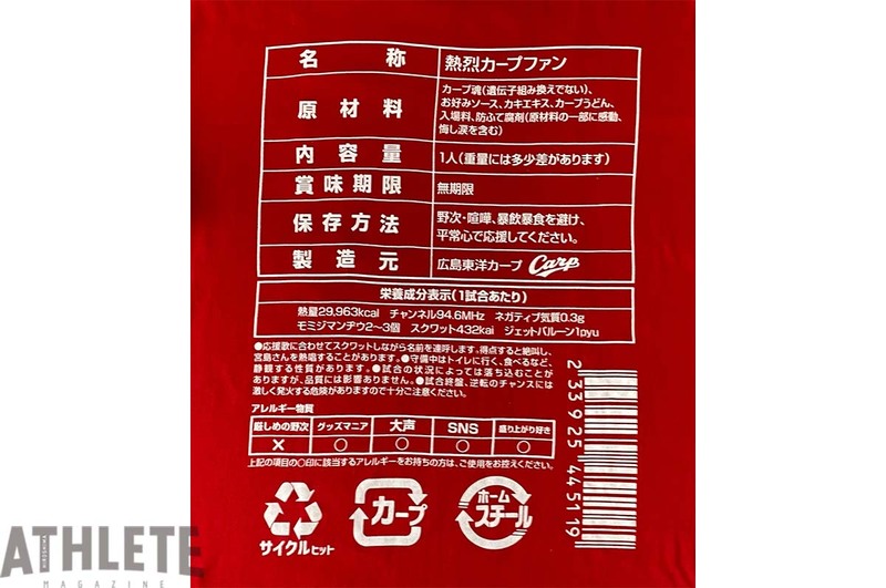 色々な食品に〝成分表示〟がされてますよね?その成分表示をカープ仕様にしたパロディTシャツです。