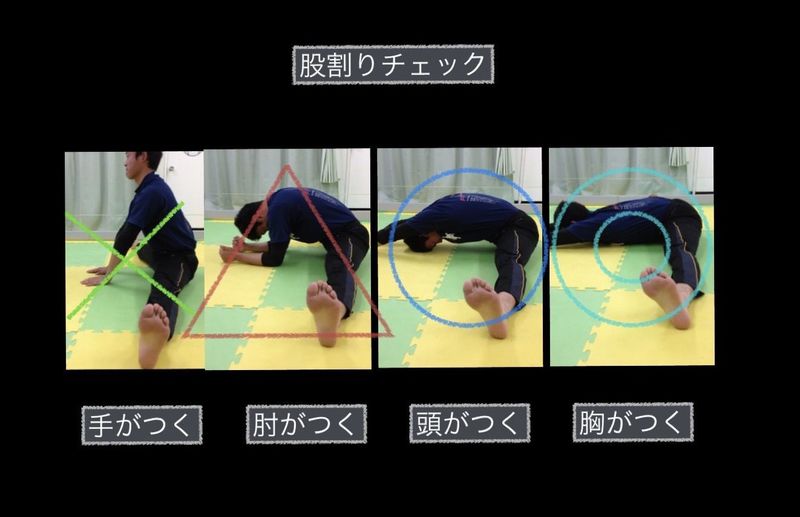 繰り返しになりますが、股割りができれば、腰割りもできるようになります。まずは、下の「股割りチェックシート」をもとに、自分の体の柔軟性を知るところからはじめてみてください。