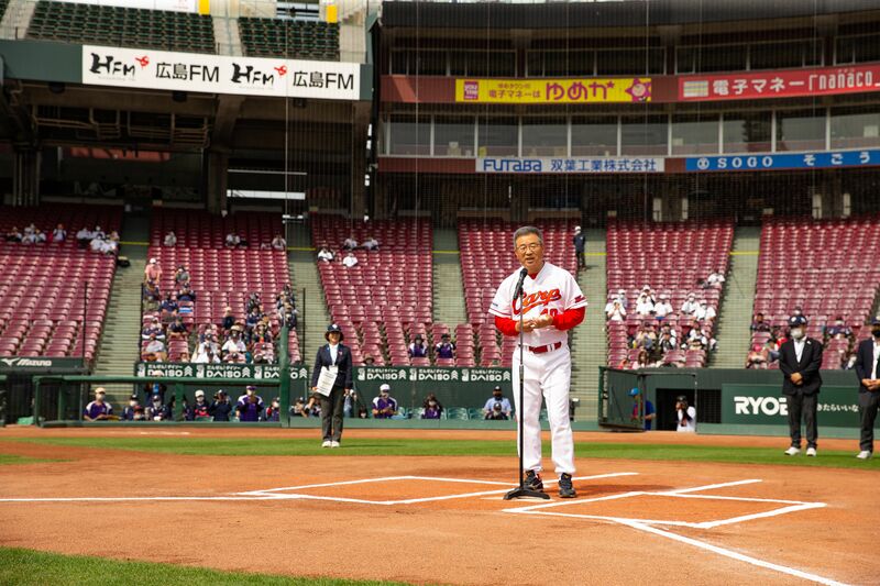 開会式後、マツダスタジアムで行われた第一試合(東広島-呉昭和)では、再度達川氏が登場。今度はマウンドに上がり始球式を務め、66歳とは思えない速球を投げ込み、場内を盛り上げた。