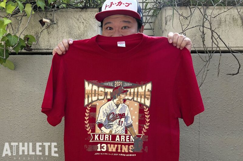 カープが大好きな役者・我善導がナビゲーターを務めるカープTシャツコレクション。カープファンの心を魅了し続けるTシャツを、役者生活20年目を迎えた我善導が語り尽くす。懐かしのTシャツから最新Tシャツまで、たくさんのTシャツがありますが、どれが紹介されるかはナビゲーターの気分次第。果たして、あなたのお気に入りの1枚は取り上げられるのか!? カープTシャツの魅力を新たな視点で切り取った連載。さぁ77回目の幕開けです!