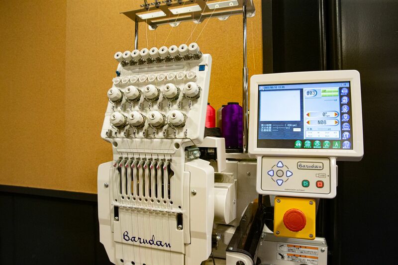チームのユニホームやグラブなどをオーダーシミュレーションできる相談カウンター。高級感があり、シックで落ち着いた雰囲気の中でスタッフが親身になって相談に乗ってくれる。体育社は多くのチームを抱えているため、他チームの事例なども交えつつ理想を追求していける。