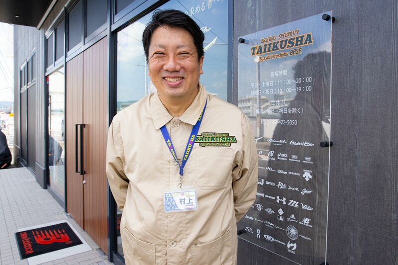 「野球を楽しむ人が増えてほしいので、体育社がそのきっかけとなれるよう力添えをしたいですし、野球を通じて地域貢献していきたいです」と語る東広島店の村上店長。人柄の良さがにじみ出る笑顔でお客様に寄り添った接客をしてくれる。本連載第1回目から一貫しているのは「ささいなことでも悩みがあれば気軽に相談にきてほしいですし、遊びにくるだけでも寄っていってほしいです」ということ。優しく、熱い想いをさせる熱血店長だ。