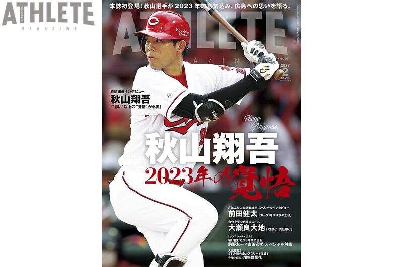 広島アスリートマガジン2月号は、本誌初登場!『秋山翔吾 2023年の覚悟』。さまざまな角度から秋山選手の“覚悟”に迫りました。2015年以来の登場となる、前田健太選手インタビューにもご注目ください!
