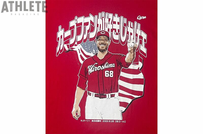 ヒーローインタビューでは、Tシャツのデザインにもなっている「カープファンガスキジャケェ!」と言ってファンをわかせたターリー投手。記念ボールは、この試合でプロ初セーブを挙げた矢崎投手から譲り受けたものでしたよね。