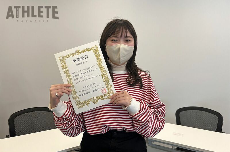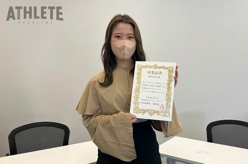 大学の職員さんが広島アスリートマガジンを見て、「すごいね!」と言ってくれてうれしかったですし、取材とかに行ってみて、広島にずっと住んでいたので、広島のことは自分自身結構知っていると思っていたのですが、全然知らないこともたくさんありました。それを踏まえて、よりたくさんの人に広島の魅力を届けていきたいなと思いました。アスマガgirlをさせていただくことができて本当によかったです。