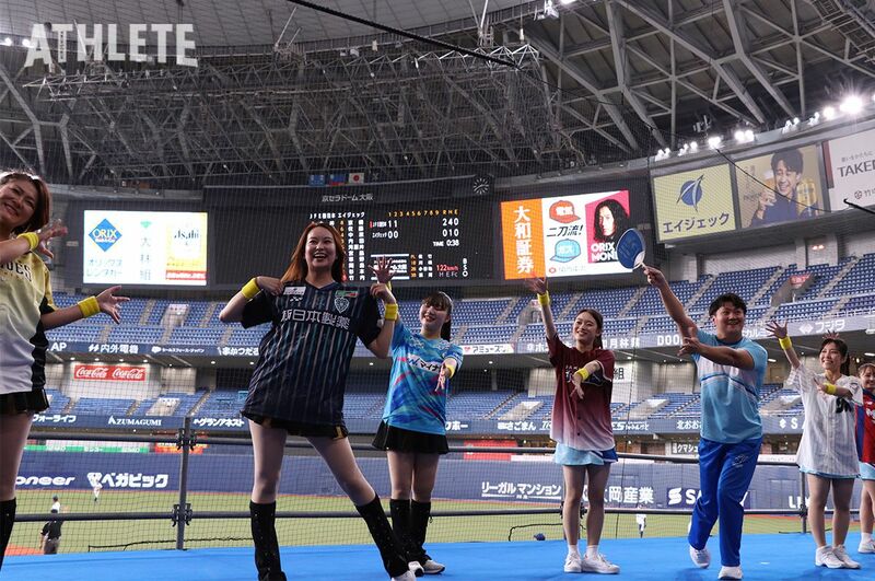 さらに3回、応援ステージでは、野球部以外のユニホーム姿のチアリーダーたちが並んだ。そのチームは全てエイジェックとパートナーシップを結んでいるチームで、『栃木ゴールデンブレーブス』『アビスパ福岡』『川崎フロンターレ』『マイナビ仙台レディース』『FC東京』『日光アイスバックス』と多岐に渡る。