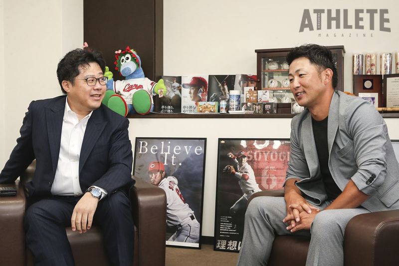 今回はカープ選手を起用したCMにおける数々のエピソードから「思い出の一作」をテーマとして、創建ホーム専務取締役・山本慎さんと、同社CM9年連続出演という最長記録保持者であるカープOB・梵英心さんによる特別対談をしていただきました! 普段は知ることができないCM撮影の裏側から、それぞれの思い入れのある歴代CMまで語り尽くします!