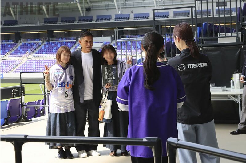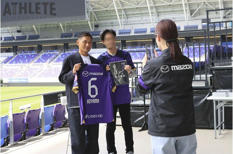 4月30日、エディオンピースウイング広島で、アスリートマガジンが主催の、サンフレッチェ広島・青山敏弘コーチが登場するファン・サポーター交流イベント『サイン本お渡し撮影会』が行われた。