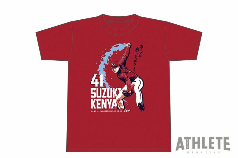 鈴木は現役ドラフトでカープに移籍加入。前所属の日本ハムでは先発のほかリリーフとしても活躍し、2023年にはキャリアハイの24試合に登板し6勝をあげていた。球団は「Tシャツは、独特な軌道を描く鈴木投手のフォームと、『カープに来られたからこそ』と新天地での初勝利に対する喜びの言葉をデザインしました」とコメント。