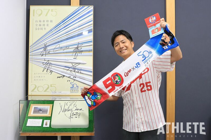 最後に、50周年を迎えるカープ坊やは、我々も『駅長カープ坊や』として使わせていただいておりますが、カープと広島のシンボル的存在になっていると思います。可愛らしいからこそ、多くの方々に愛されるキャラクターだとも思うので、これからも変わらず、かわいい坊やでいてほしいです。山陽新幹線全線開業50周年と赤ヘル50周年が重なり、今このような立場で仕事をさせていただいているということは、運命を感じるとともに、感謝の思いでいっぱいです。これからも一緒に年を重ね、一緒に広島を盛り上げていきましょう!