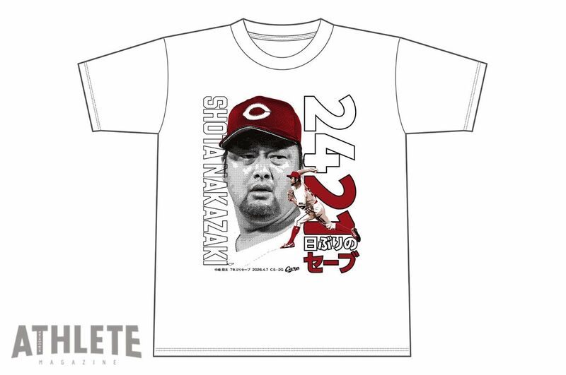 カープは4月7日の巨人戦で7年ぶりとなるセーブをあげた中﨑翔太の記念Tシャツを、期間限定で販売すると発表した。