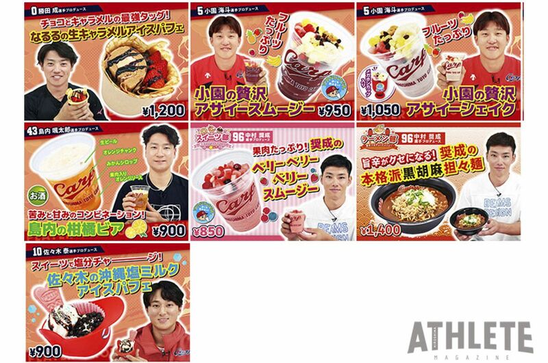 カープは4月21日より、『選手プロデュースメニュー2026〜第2弾〜』の販売をスタートすると発表した。第2弾では、勝田成、佐々木泰ら5選手がプロデュースした7種類のメニューが登場する。
